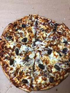 Chicken, sundried tomato, mushroom, Kalamata, olives, garlic & Spanish onion topped with sour cream.
