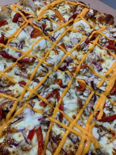 Peri base, chicken, roasted capsicum, mushroom, Spanish onion & bocconcini topped with peri mayo.